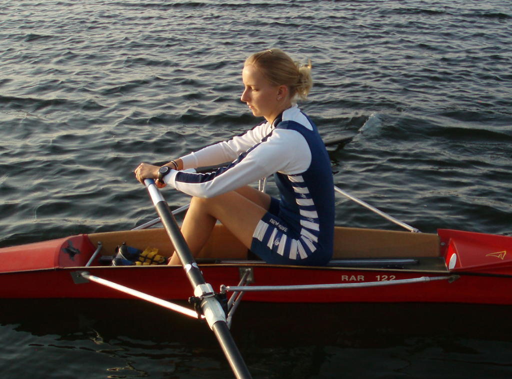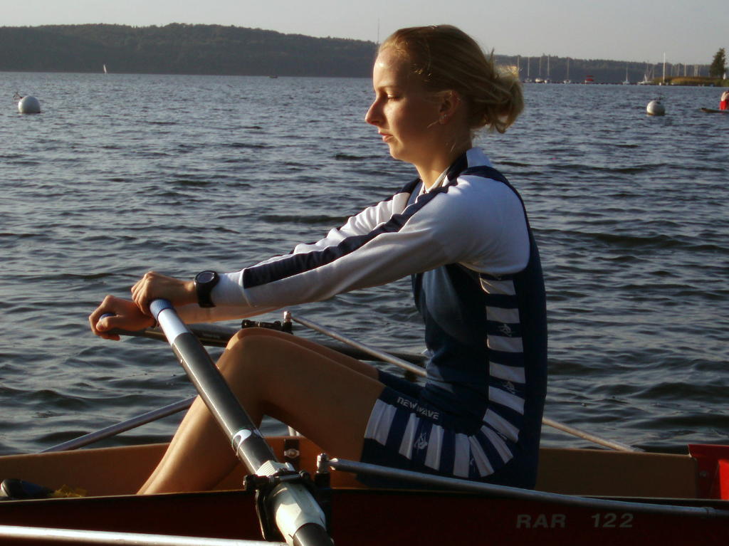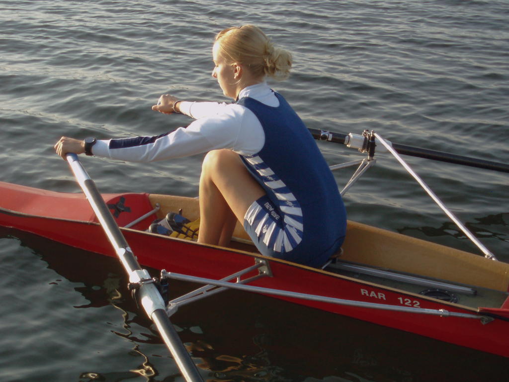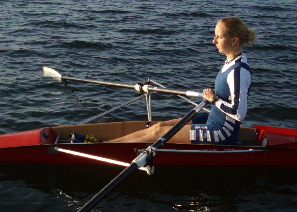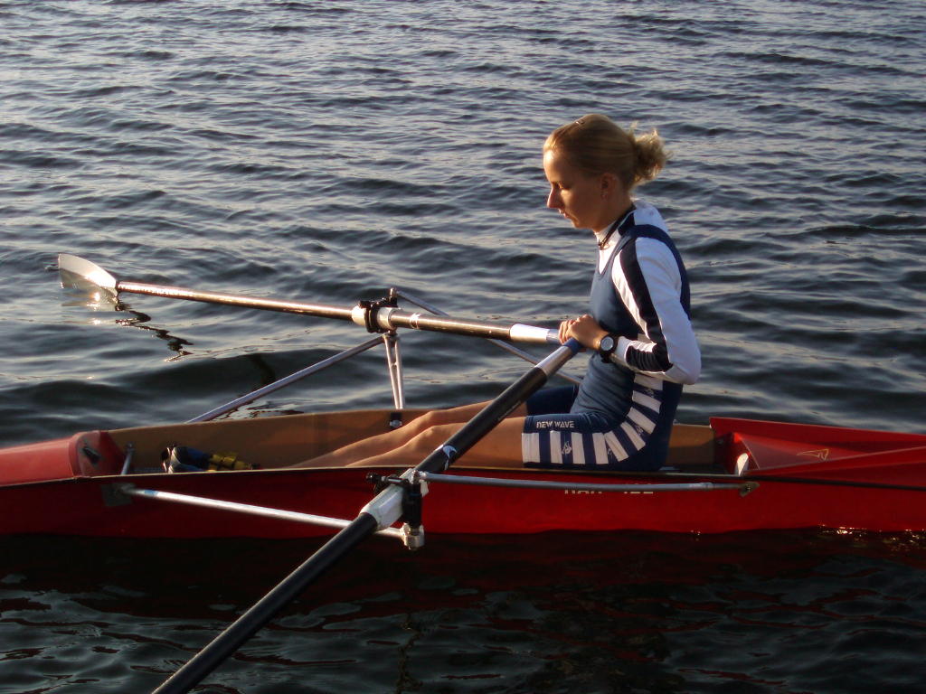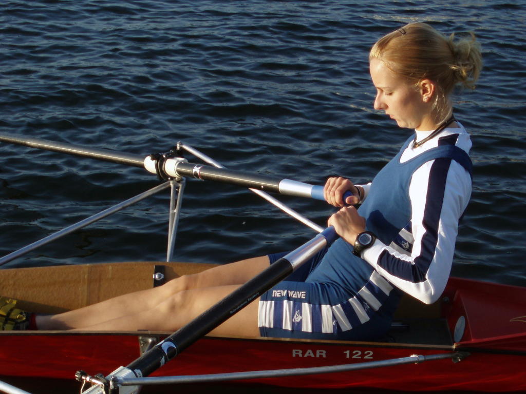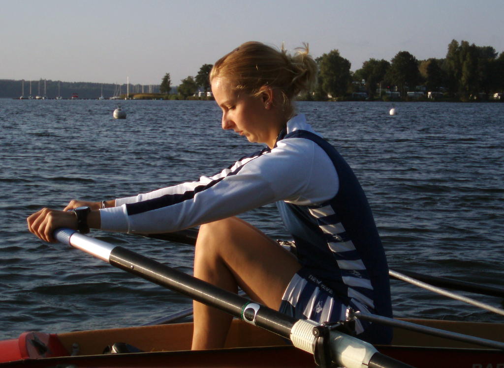 - Rudern mit schleifenden Blättern und festem Sitz, allmählich auf volle Rollbahnlänge steigern.