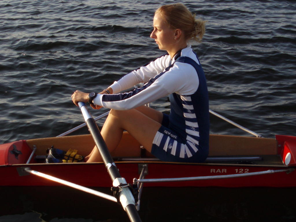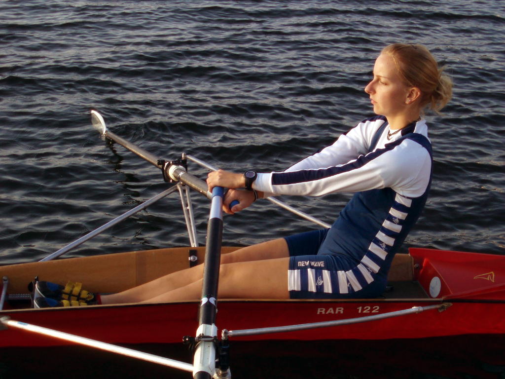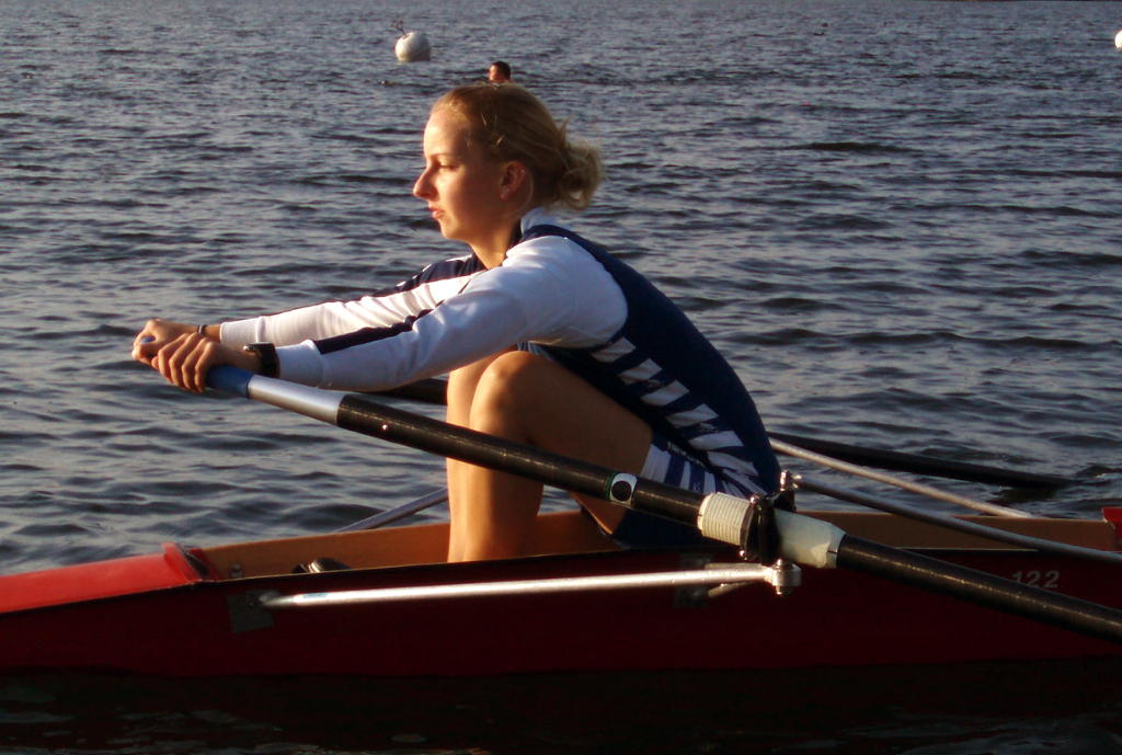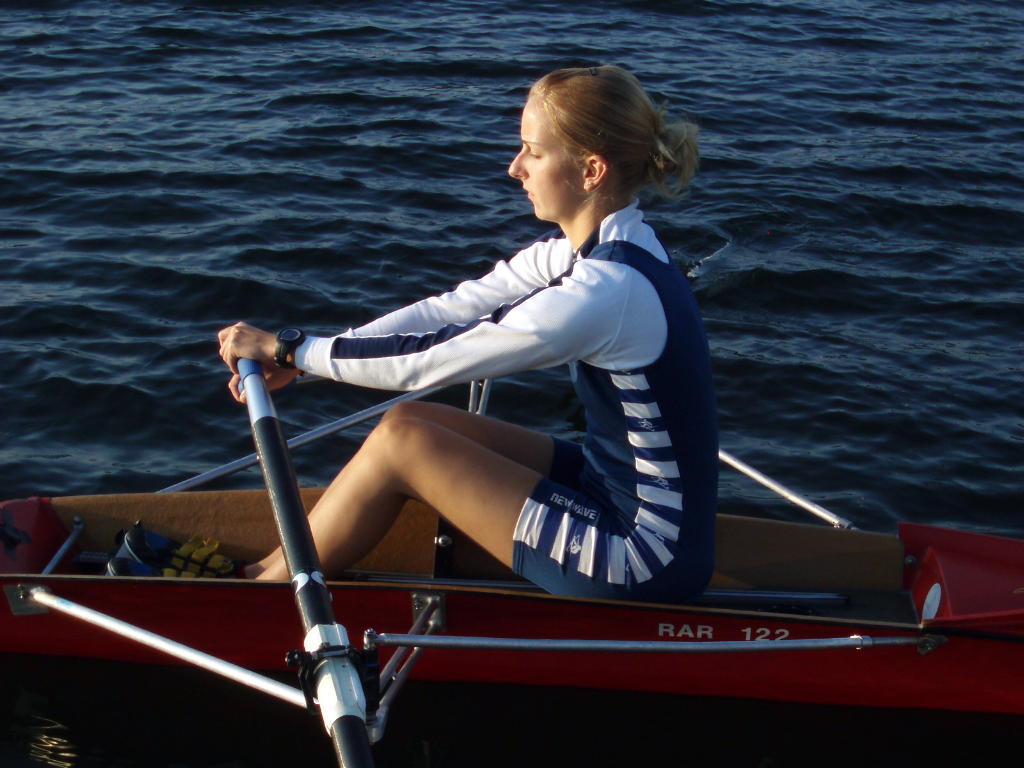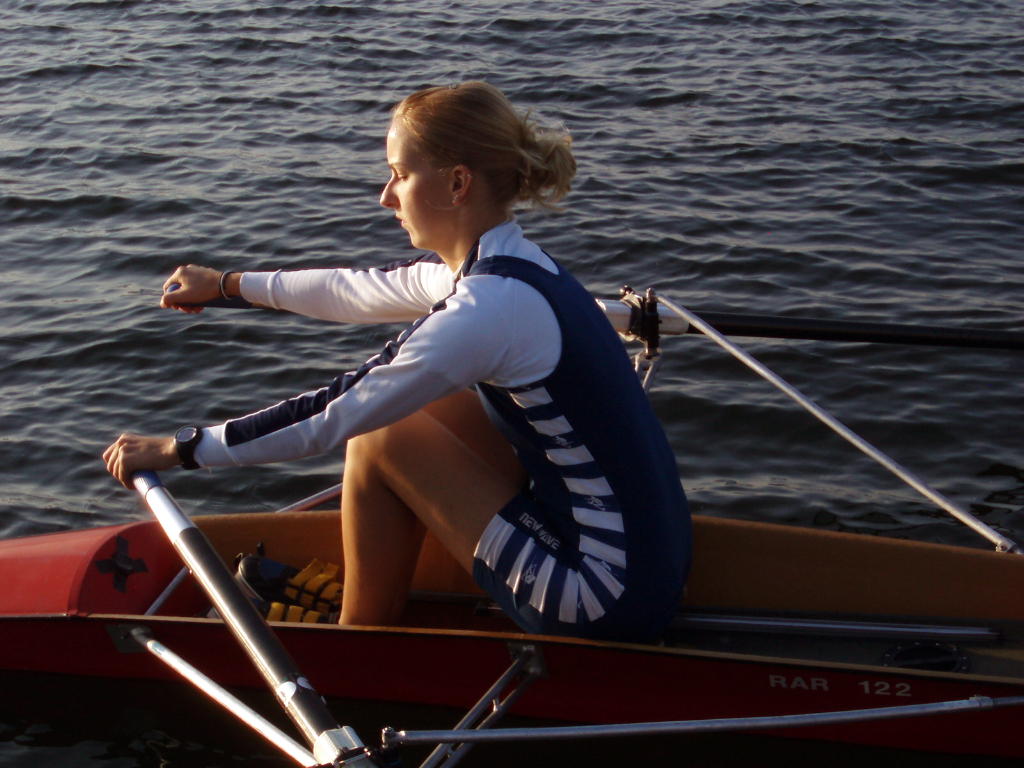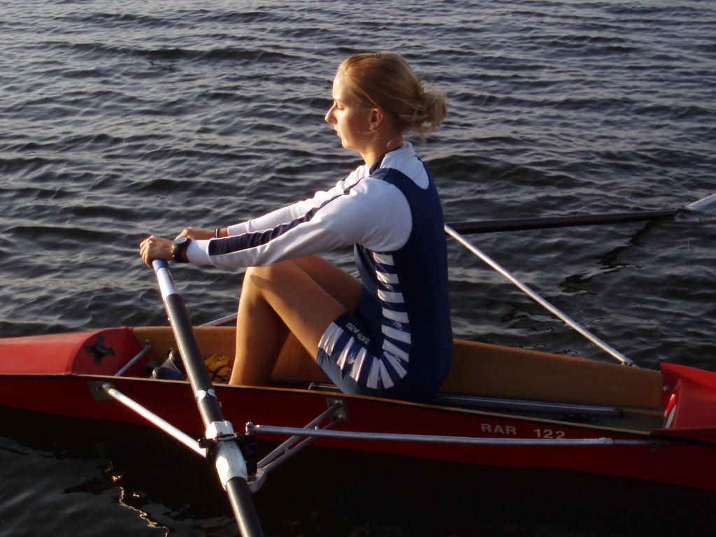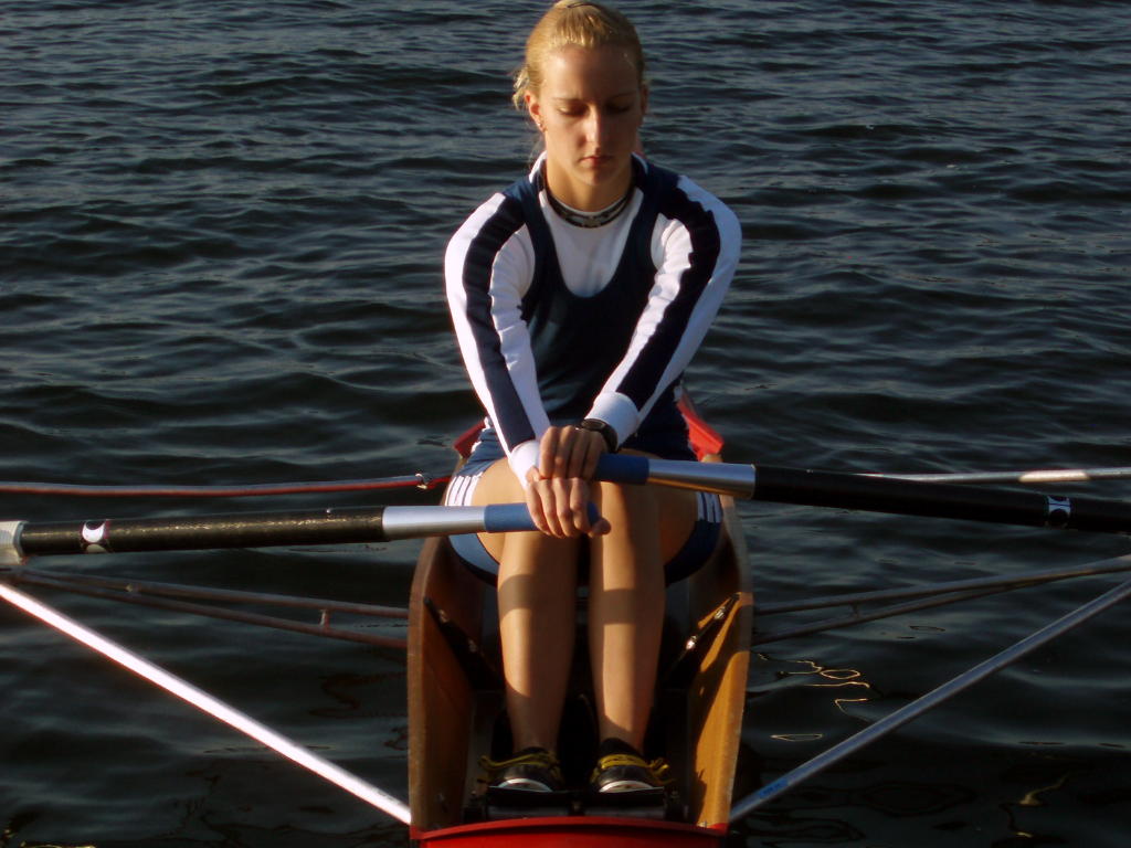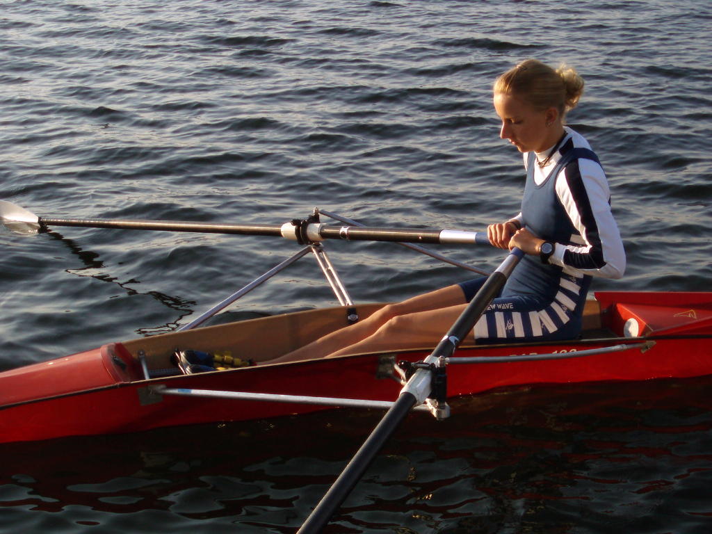 - Rudern mit schleifenden Blättern und festem Sitz, allmählich auf volle Rollbahnlänge steigern.