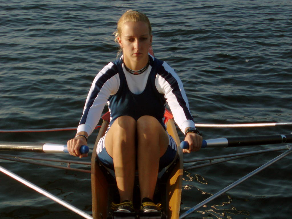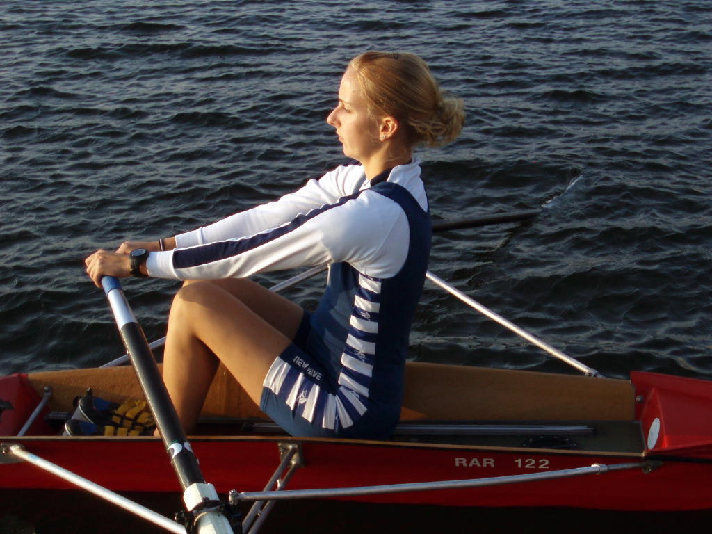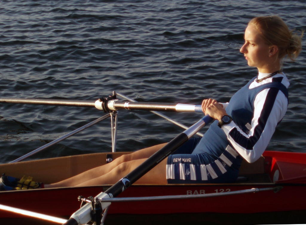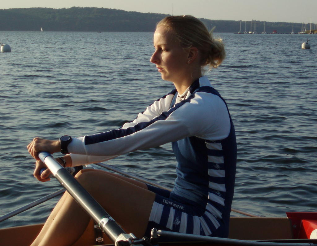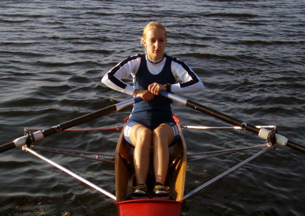 - Rudern mit festem Sitz und in Rücklage fixiertem Oberkörper sowie mit schnellem Vorführen der Innenhebel