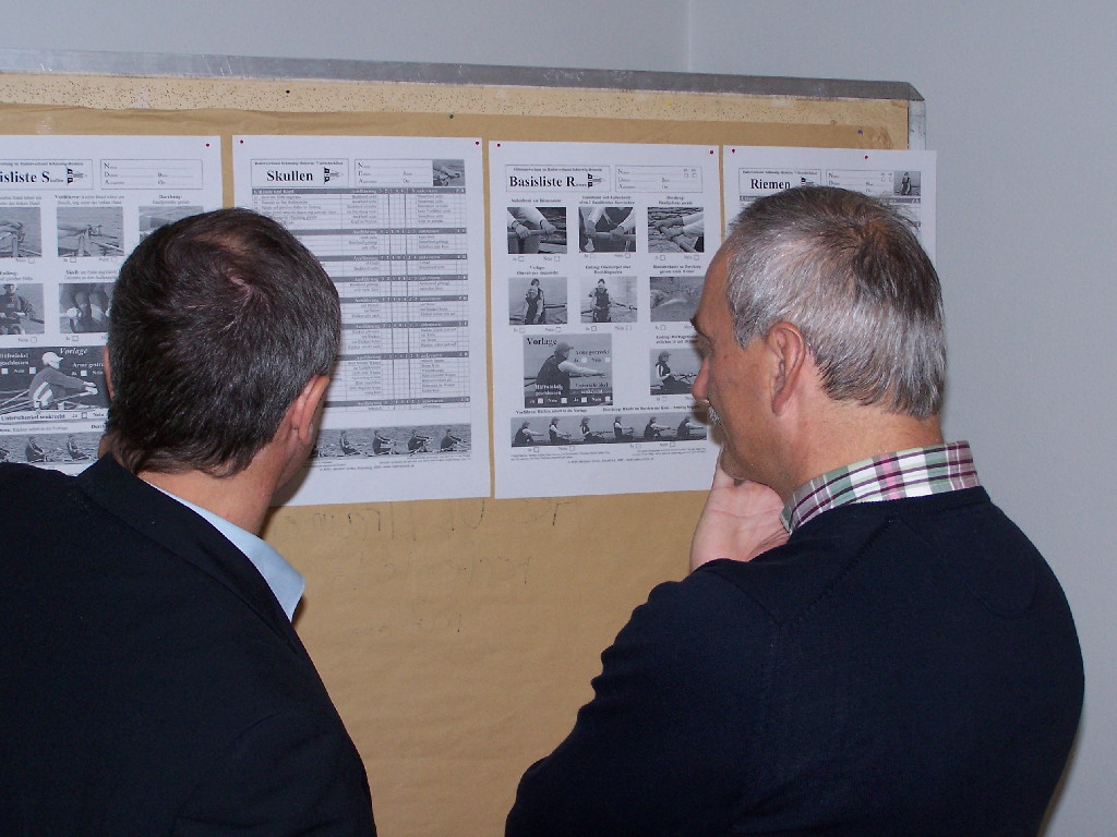 Was dabei herauskommt, wenn Theorie und Praxis aufeinander treffen, durften die 25 Teilnehmer des DRV-Lehrgangs am ersten Novemberwochenende in der Ruderakademie Ratzeburg live mitverfolgen. Dort trafen Prof. Dr. Klaus Mattes von der Uni Hamburg und Reinhart Grahn, Vorsitzender des Ruderverbands Schleswig-Holstein aufeinander und tauschten die Vorzüge unterschiedlicher Ruder-Analysetools aus. Beim eigentlichen Hauptthema, dem »Ruderleitbild«, klinkten sich außerdem die DRV-Trainer Marcus Schwarzrock (U23) und Hartmut Buschbacher (Cheftrainer) ein. Keine leichte Aufgabe für Lehrgangsleiter Andreas König, Teilnehmer und Referenten zusammen zu bringen, zumal der Hintergrund der Teilnehmer so vielfältig war wie der Rudersport selbst: Schul- und Unigruppenleiter, Freizeitruder-, Kinder und U23-Trainer sowie A-Traineranwärter erhofften sich, »endlich das Rudern zu lernen« oder »einfach nur die Lizenz zu verlängern«.